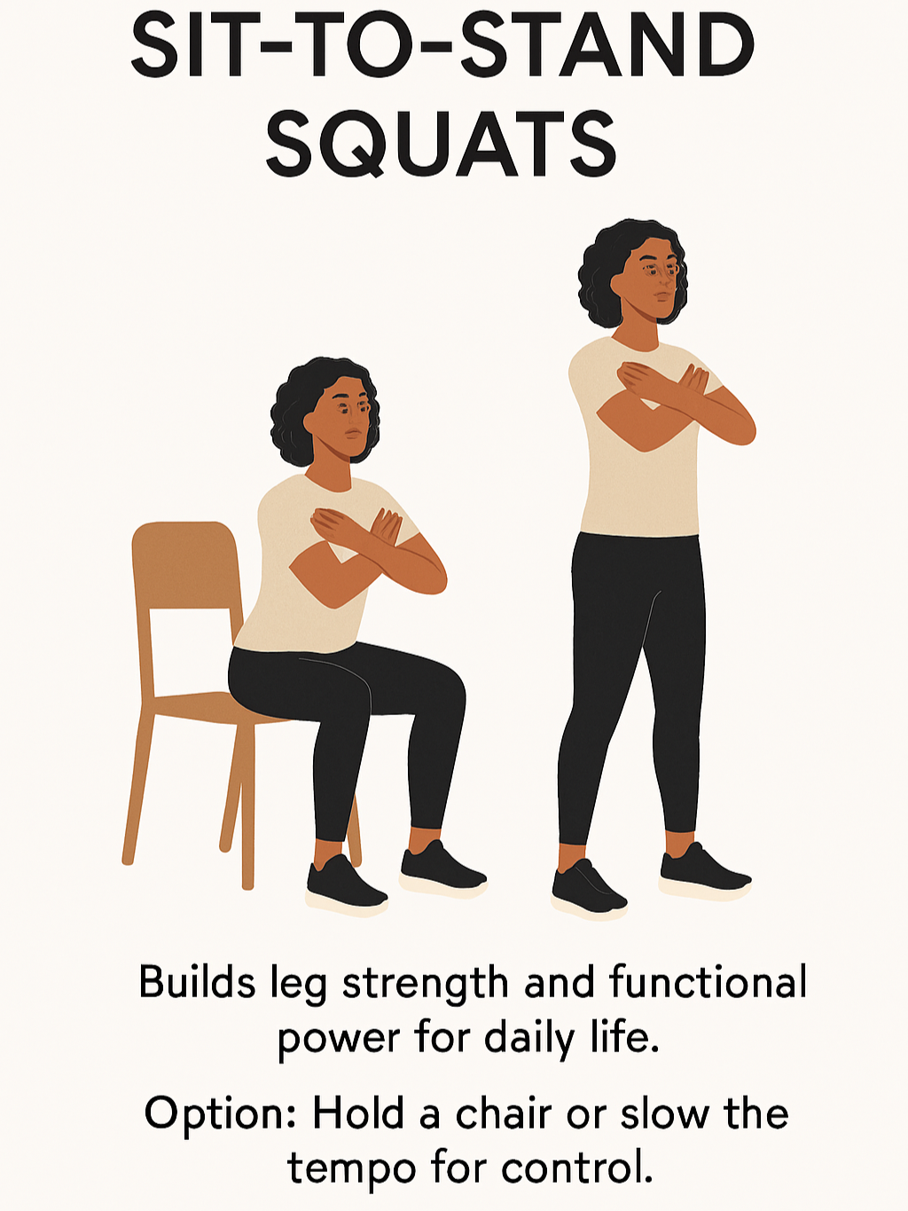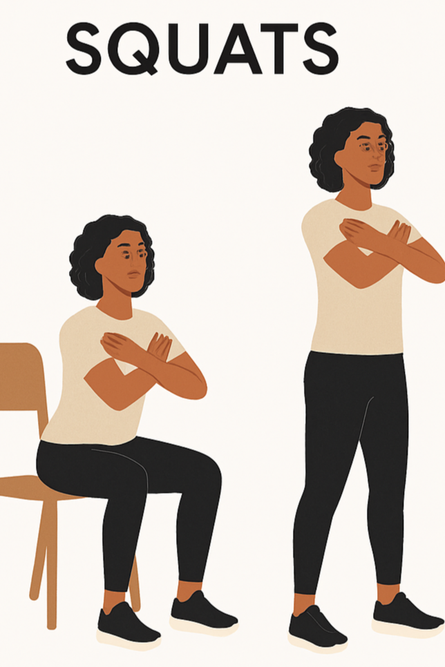1. Sit-to-Stand Squats – 10–12 reps